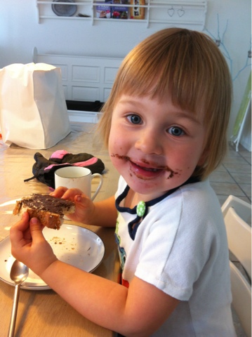 Så fik jeg lige fanget et par fjæs af trolden i æsken. Bagefter synes hun det var hendes tur til at knipse. Men hun koncentrerer sig så meget om at jeg skal sige smil, så hun ikke helt ser hvor iphonen pejer når hun knipser.